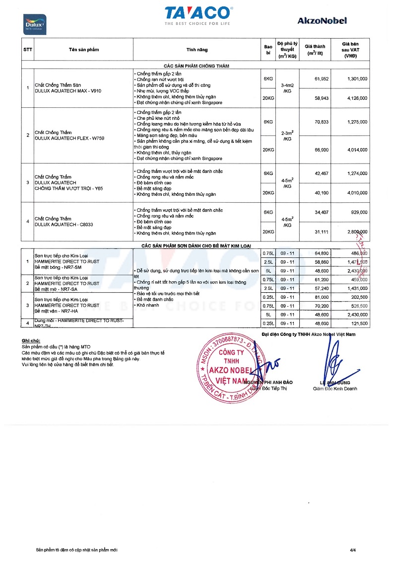 CÔNG TY TNHH SƠN TAVACO – ĐẠI LÝ SƠN DULUX CHÍNH HÃNG
